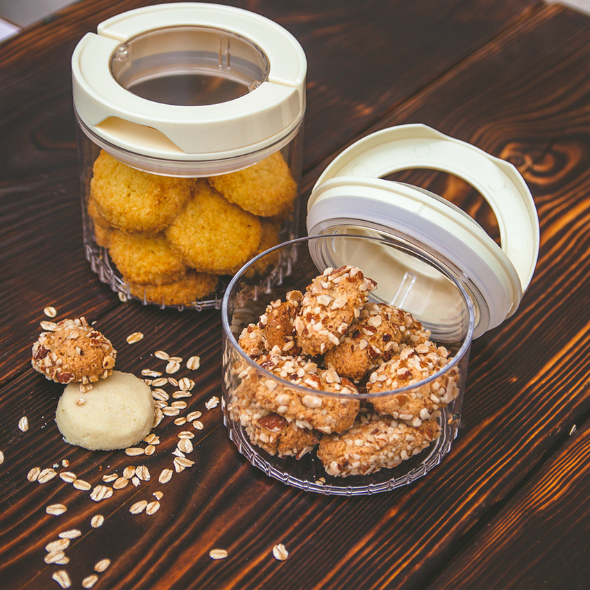 - A rounded base provides plenty of room for storing dry fruits, cookies, candy, and other kitchen items.
