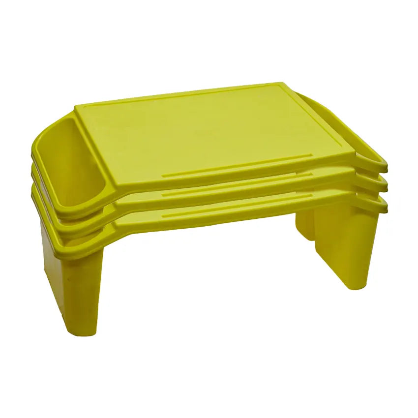 Bottom anti-slip design, Safe and Stable. Easy to clean. Easy to store and transport. Cavity to hold tablet and phone. Tables edges prevent objects from sliding of the desk-top.