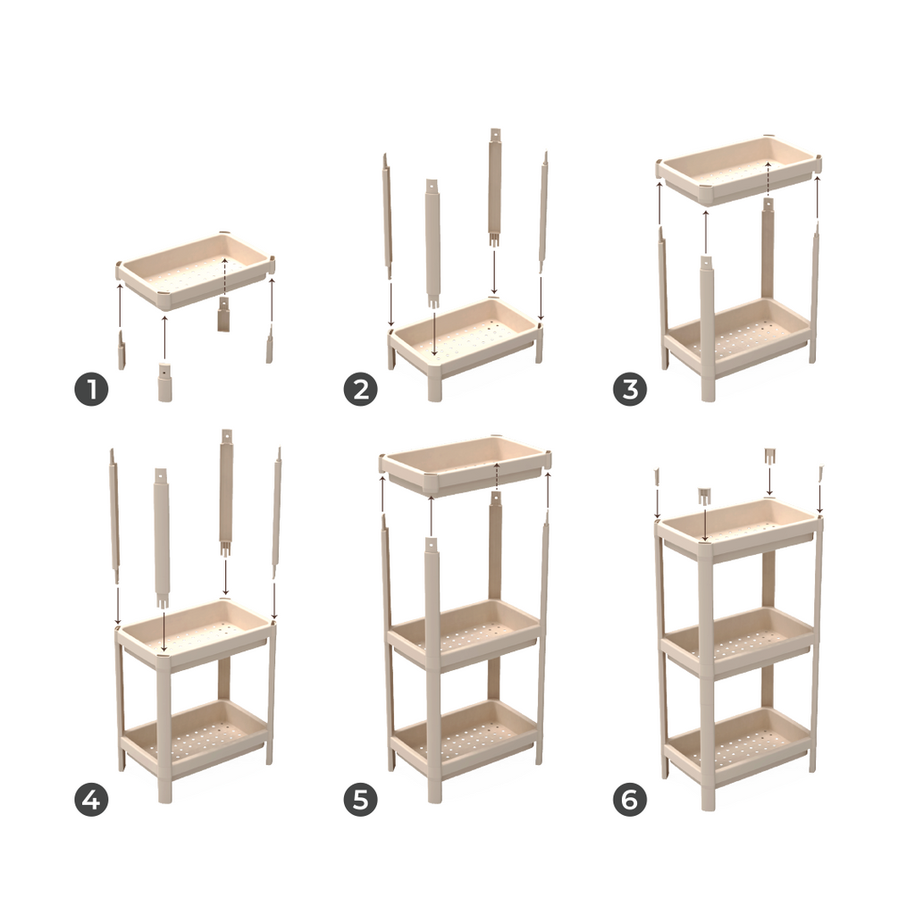 Vertical three-tier structure helps maximize storage in compact areas. -