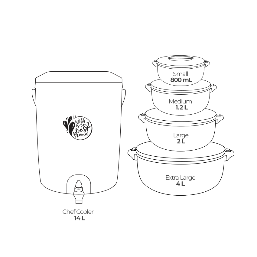 - Multiple Portion Sizes: The bundle pack offers Chef Food Warmer in XL, Large, Medium and Small sizes along with Chef Cooler 14-L, providing a complete package for serving meals to large gathering or gifting.