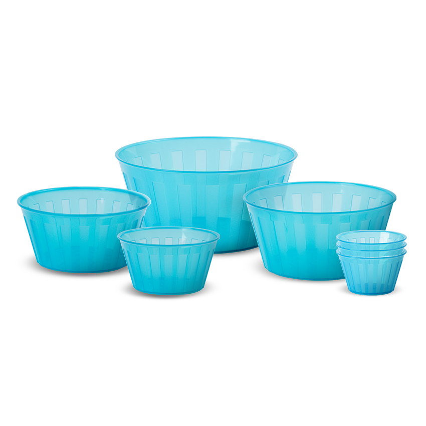 Store fruits, mix and prepare a meal, or serve crispy snacks in Milan Bowls, the perfect combination of style and storage. These nestable bowls are available in 5 capacities, with the perfect serving size to prepare, store, and serve a variety of savory items and desserts. Whether you're serving chips at an evening tea party or mixing vegetables for a delicious salad at lunch, the Milan Bowls are sure to impress with its trendy colours.
